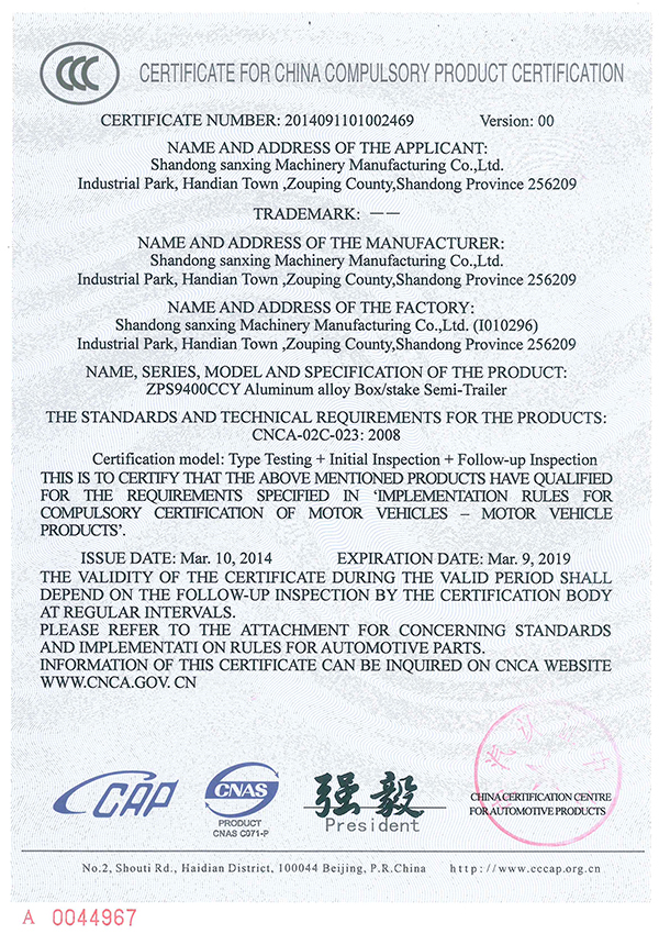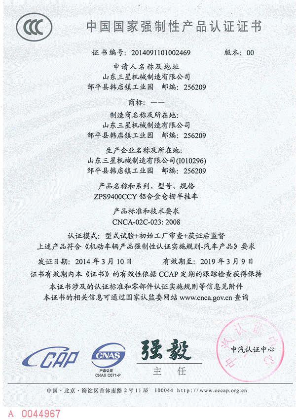 中國國家強(qiáng)制性產(chǎn)品認(rèn)證證書